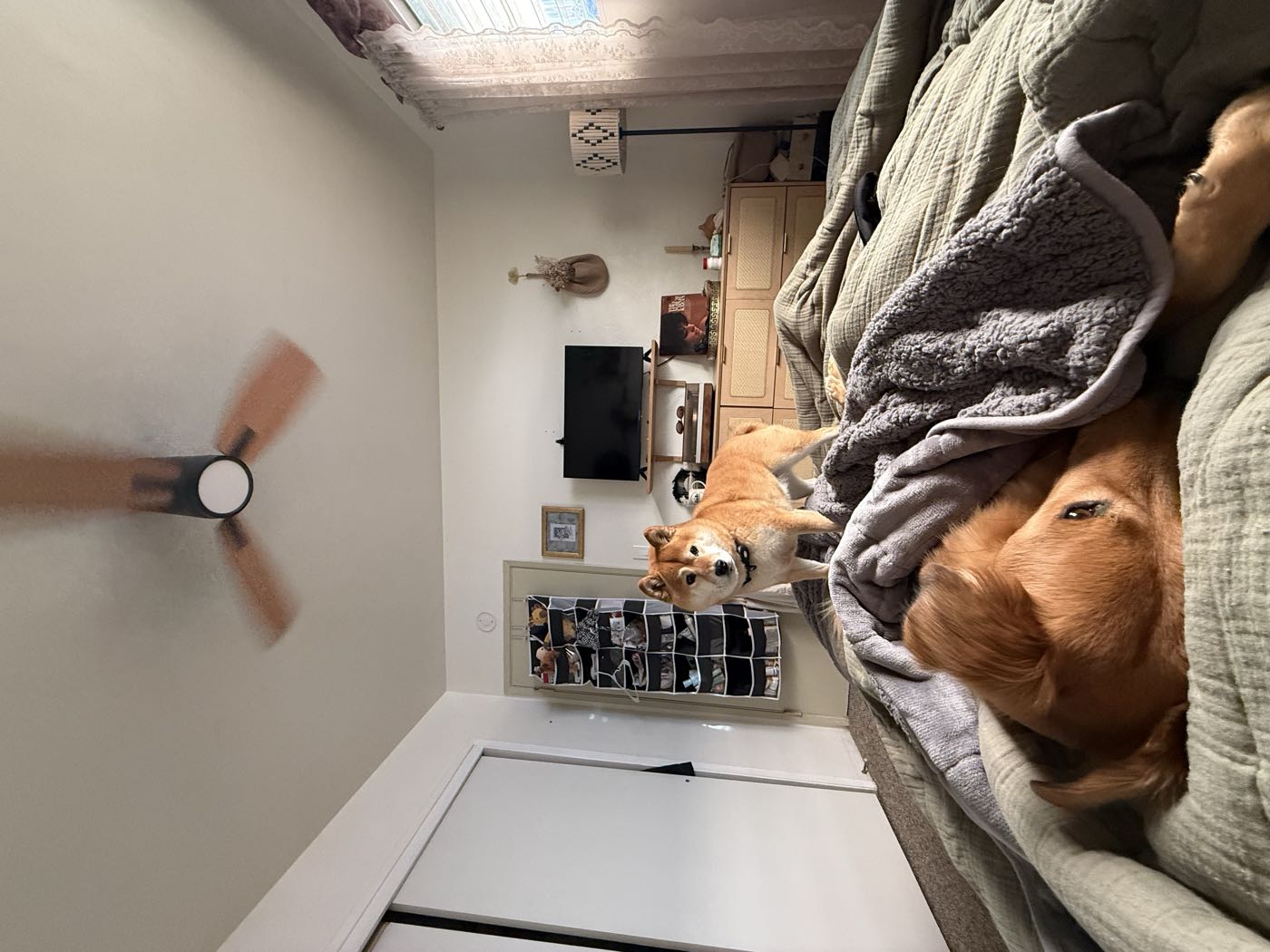 behind you there is a closet, open the closet to retrieve your first gift. put it on and take a picture.